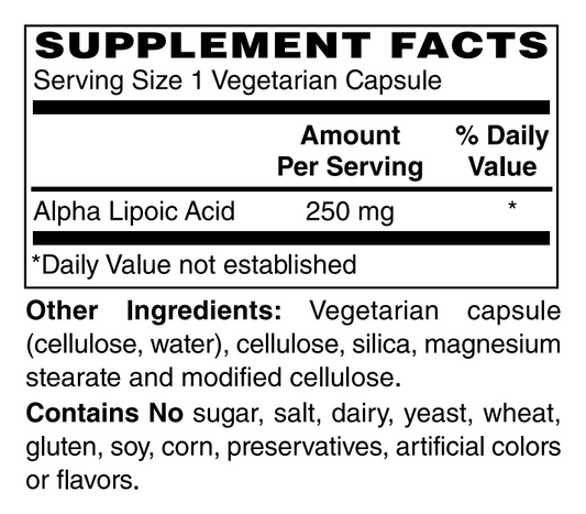 Sold outAlpha Lipoic Acid 250mg